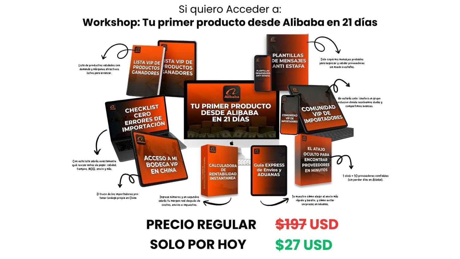🎓 Workshop “Tu Primer Producto desde Alibaba en 21 días” ($97)